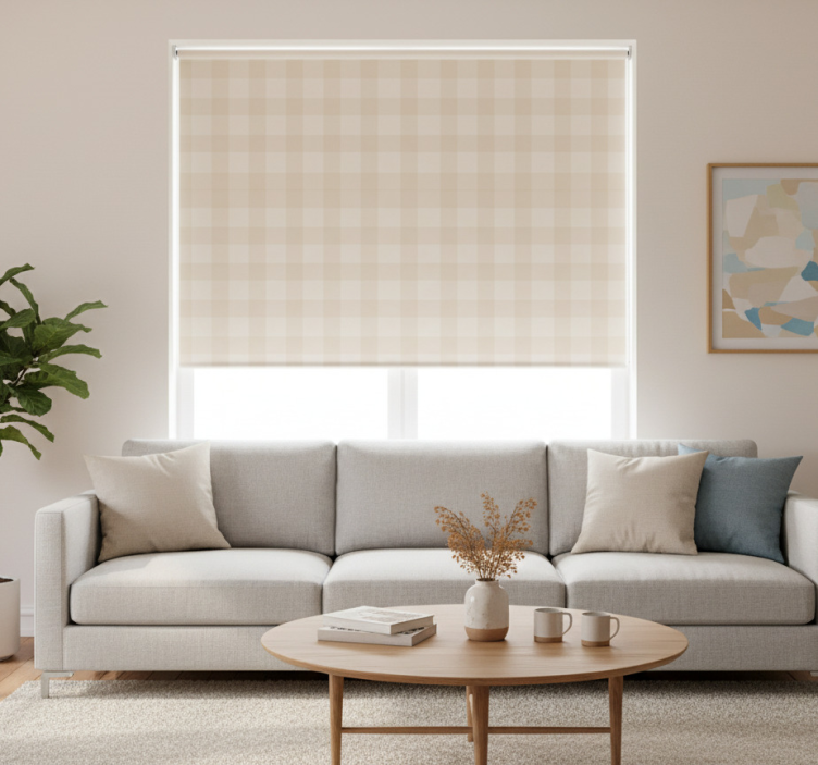 デザインは、クラシックなチェック柄の柔らかなベージュトーンの調和の取れたブレンドを特徴としています。微妙な幾何学的形状が視覚的な興味を加え、シンプルさを高めています。光と影の相互作用が穏やかな雰囲気を生み出し、どんな空間にも温かさとスタイルをもたらすのに最適です。