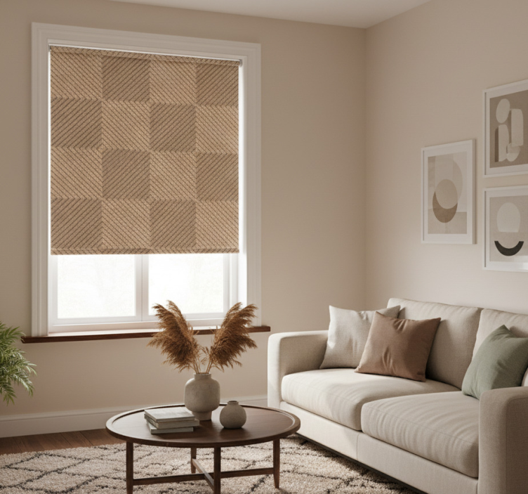 ブラインド ベージュ ジュート四角ブラウンパターン