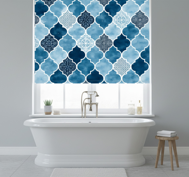 モロッコ風の青水彩デザインが印象的なこのブラインド 青は、どんなインテリアにも調和します。直射日光を遮りつつ、プライバシーを守る機能を持つこの製品は、あなたの空間をより快適に、スタイリッシュに演出します。お客様の光の量やプライバシーに応じて、3つの異なるテクスチャから選べるブラインド 青 モロッコ風青水彩は、100%カスタマイズ可能で、どんな窓にもフィットします!