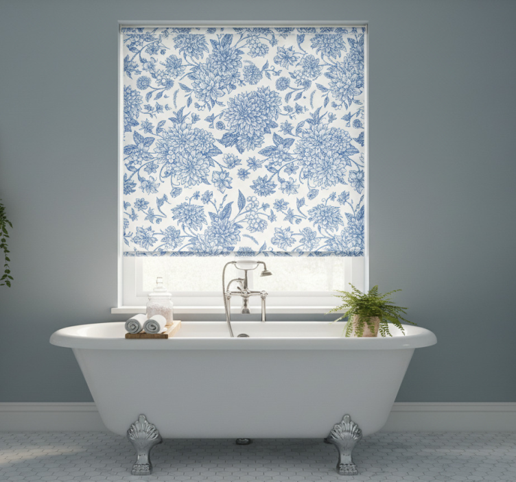 鮮やかな青色のダリアの花柄が施されたこのブラインドは、インテリアに華やかさを加え、どんな部屋にもぴったりです。デザインは洗練されており、シンプルながらも目を引く存在感を持っています。日差しを和らげつつ、プライバシーを守る機能も兼ね備えています。おしゃれで実用的なアイテムをお探しの方に最適です!