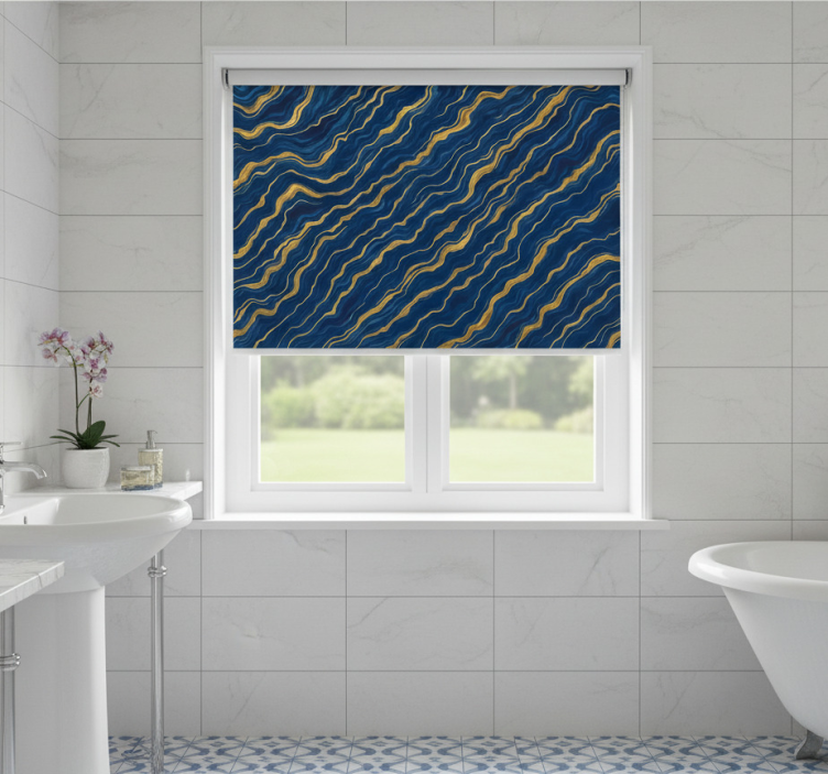 ブラインド 青 青と金の大理石は、洗練されたデザインでお部屋を華やかに演出します。この製品は、直射日光から部屋を保護し、プライバシーを確保しながら、インテリアの美しさを引き立てます。お客様のニーズに応じた100%カスタマイズ可能な寸法と、3つの異なるテクスチャから選べるのも魅力です!