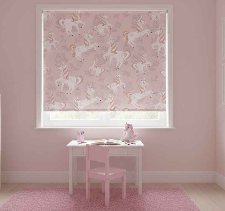 情報 ブラインド 子供部屋 ピンクの花と背の高いユニコーン