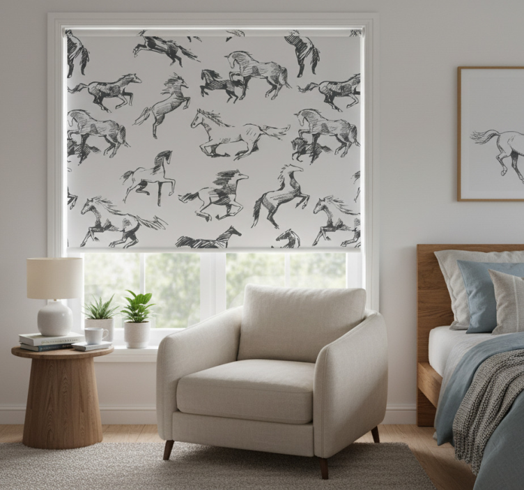 ダイナミックなパターンは、動きの中にいるさまざまな馬を特徴としており、優雅さとエネルギーの本質を捉えています。駆け抜ける姿から立ち上がる姿まで、異なるポーズが生き生きとしたシーンを作り出しています。白黒のスケッチは、これらの壮大な動物の美しさと精神を際立たせ、自由と活力の感覚を伝えています。