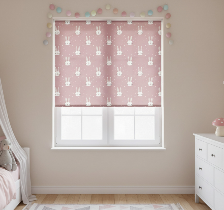 ブラインド ピンク ベビーバニーの顔は、子供部屋の装飾に最適です。カラフルで遊び心あふれるデザインは、小さなお子様の心をつかむこと間違いなし!お部屋の雰囲気を明るくし、楽しい空間を演出します。さらに、カスタマイズ可能な寸法で、どんな窓にもぴったりフィットします。
