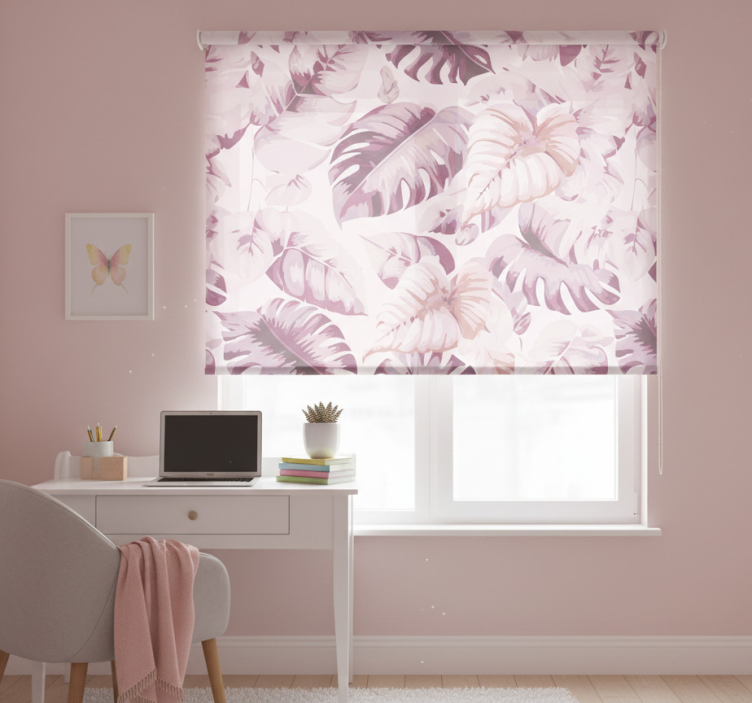 ブラインド ピンク 大きなトロピカルリーフは、2回のクリックで簡単に取り付けられます。必要な道具はほとんど不要で、あっという間にお部屋の雰囲気を変えることができます!
