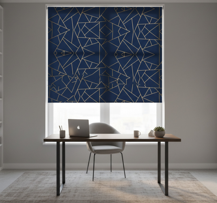 豊かなネイビーバックドロップに精巧な幾何学模様が描かれ、細い金のラインが引き立てています。この魅力的なパターンは、現代的な洗練さを感じさせ、あなたのインテリアに優雅さを加えるのに最適です。角度の相互作用がダイナミックな視覚体験を生み出します。 ブラインド オフィス 幾何学的形状は、現代的なデザインと機能性を兼ね備えたアイテムです。シンプルでありながらスタイリッシュなこのブラインドは、オフィスの雰囲気を洗練させ、快適な作業環境を提供します。2回のクリックで簡単に組み立てられ、掃除も容易です。直射日光を遮り、プライバシーを確保しながら、室温を調節することができます。また、100%カスタマイズ可能な寸法で、お客様のニーズにぴったり合った製品をお届けします。