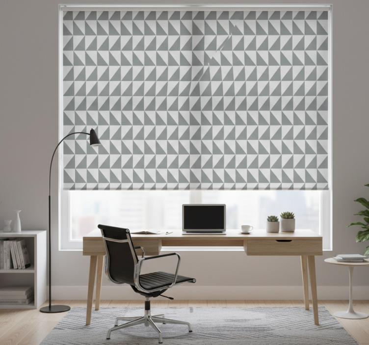 このroller blind office ブラインド オフィス グレーの幾何学模様は、2回のクリックで簡単に組み立てられます。特別な工具は不要で、誰でも手軽にインストールできます!