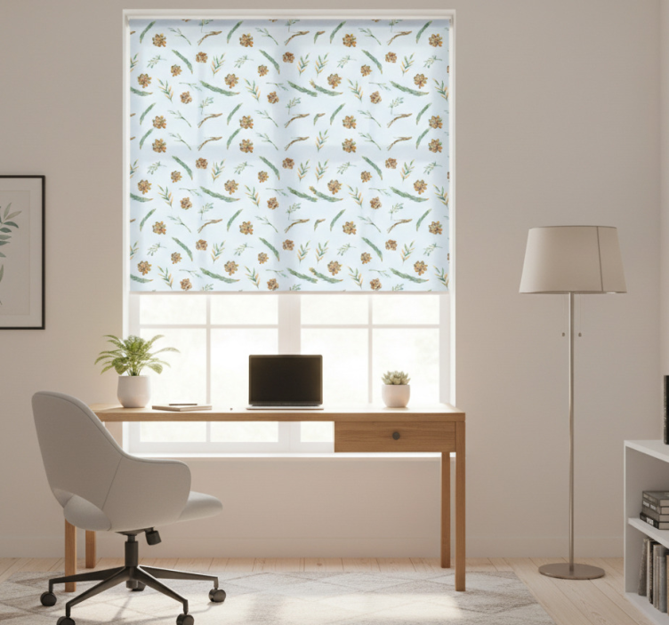 ブラインド オフィス 水彩花柄ブルーの魅力