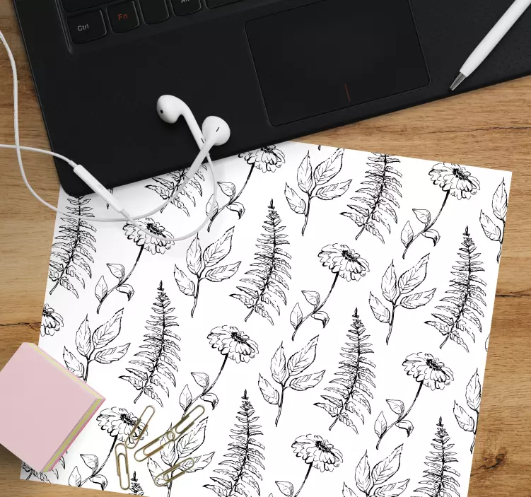 私たちのマウスパッド パターン 花のスケッチパターンは、黒と白の調和が美しい手描きのフラワーと葉のデザインが特徴です。自然の息吹を感じさせるこの製品は、最小限かつミニマリストなスタイルで、どんなデスクにもマッチします。植物のスケッチが繰り返されるパターンは、オフィスや自宅での作業空間を華やかに彩ります。