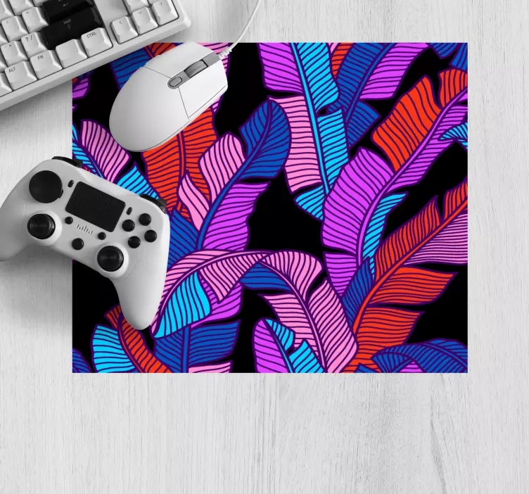 私たちのマウスパッドは、生き生きとした葉のプリントが施されたデザインで、視覚的に魅力的な空間を演出します。ネオンカラーとカラーブロックが組み合わさり、ヤシの葉やトロピカルな植物の図柄が活気に満ちた印象を与えます。手のひらが描かれたこのデザインは、どんなデスク環境にも色鮮やかなエネルギーをもたらし、作業を楽しくしてくれることでしょう!