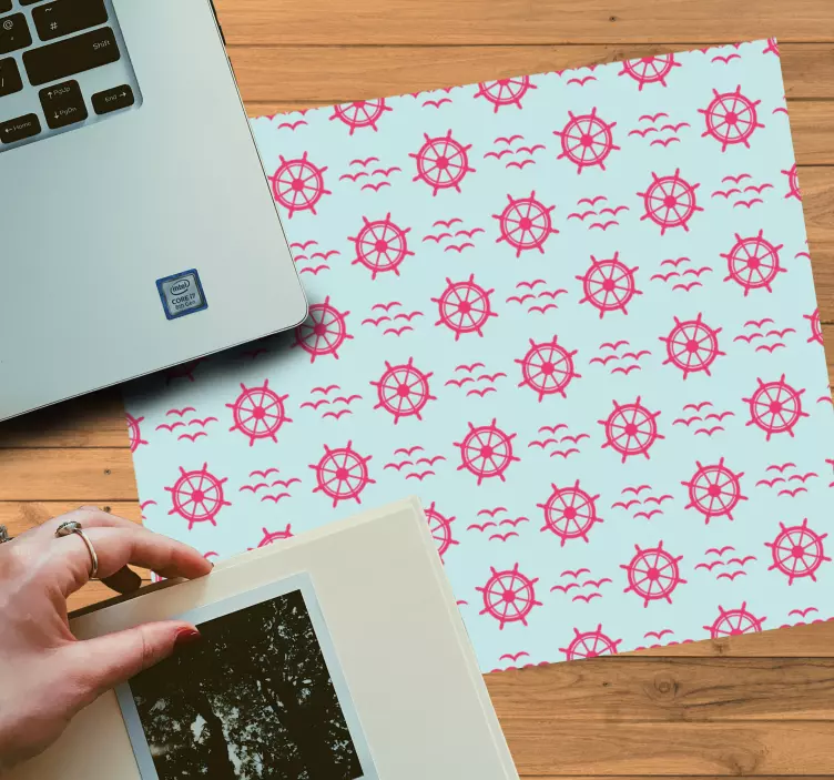 私たちのマウスパッド パターン 船の舵は、航海の冒険を感じさせるデザインが特徴です。美しいホイールや、自由に飛ぶ鳥たちが描かれ、海をテーマにしたパターンが目を引きます。ピンクと青の色合いが融合し、スタイリッシュでありながら、マリンテイストを楽しむことができます。これにより、デスク周りが一層魅力的になります!