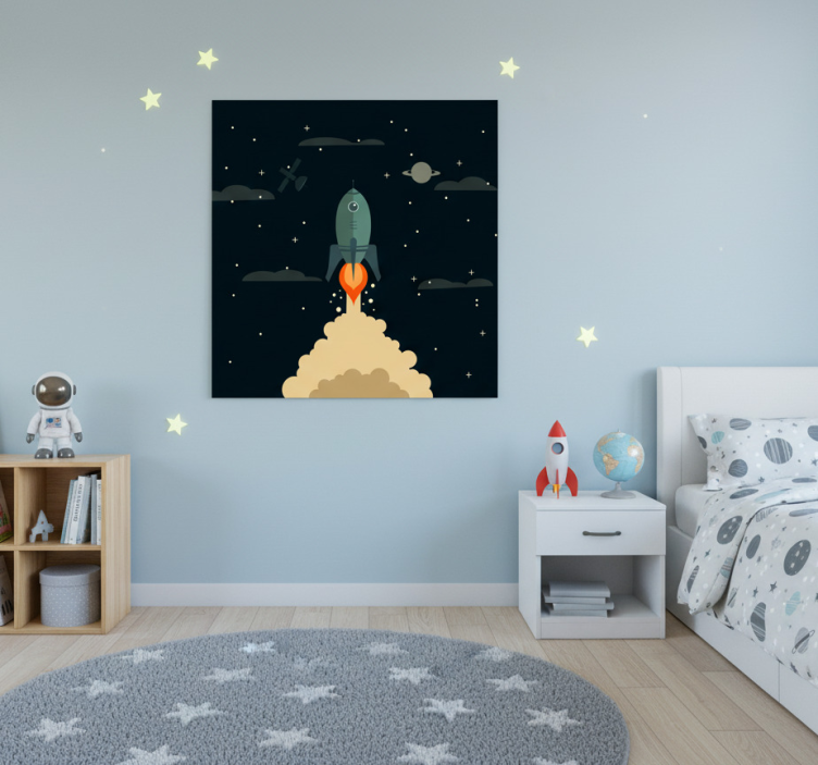 私たちのポスター 苗床 宇宙に飛び立つカートゥーンロケットは、子どもたちの夢を描いた楽しいデザインです。カラフルな宇宙の背景に、愛らしいカートゥーンロケットが描かれており、見る人々をワクワクさせます。どんなお部屋にもぴったり合うこのポスターは、子ども部屋やプレイルームに最適です。お子様の想像力をかきたてるこのデザインは、見るだけで冒険心を刺激します!