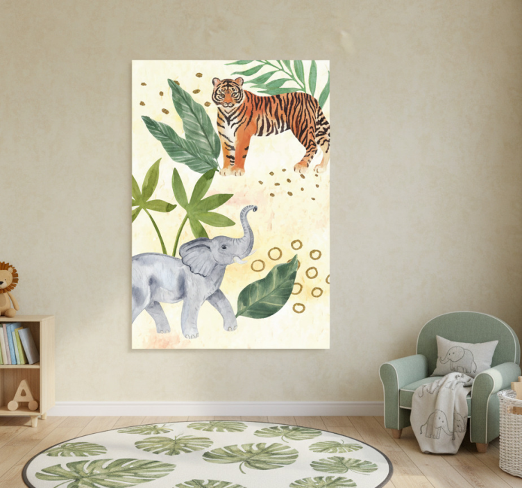 私たちのポスター 苗床 水彩のサファリ動物は、子供部屋やリビングルームにぴったりの魅力的なデザインです。鮮やかな色合いで描かれたサファリの動物たちが、見る人の心をつかむことでしょう。水彩画ならではの柔らかいタッチが、空間に温かみを加え、誰もが楽しめるアート作品となっています!