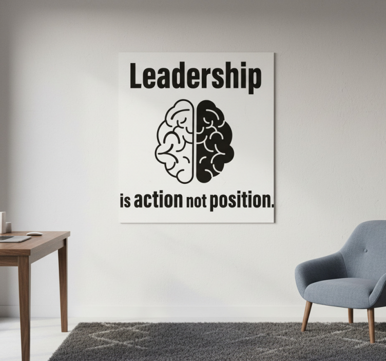 この画像は、二つの脳のグラフィックを通じてリーダーシップの本質を強調する考えさせられる引用を示しています。対照的な黒と白の色は、創造性と論理を象徴しています。このメッセージは、単なる肩書きよりも行動を重視することを提唱しており、モチベーショナルスペースやプロフェッショナルな環境にとって強力なビジュアルとなっています。
