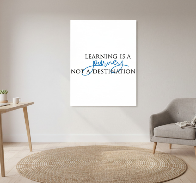 この画像は、ミニマリストなインテリアの設定を特徴としており、キャンバスに描かれたモチベーショナルな引用句が強調されています。このテキストは、成長が単なる目標ではなく、継続的な旅であるという概念を強調しています。エレガントな青の筆記体が清潔な白い背景と鮮やかに対比し、自己反省を促しています。 ポスター オフィス 旅の素晴らしさを語る名言は、あなたのオフィススペースを彩り、毎日を豊かにするインスピレーションを提供します。このユニークなポスターは、グラフィックデザインが美しく、色鮮やかな印刷が施されています。180g/m2の紙厚で作られたこのポスターは、反射のない半マット仕上げにより、どんな環境でも見やすく、印象的なメッセージを伝えます。
