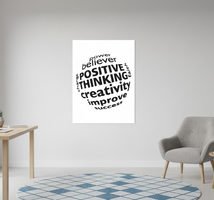 この画像は、'believer'、'positive thinking'、'creativity' などのモチベーションを高める言葉が散りばめられたインスピレーショナルな壁アートを紹介しています。このデザインは、視覚的に魅力的な配置を通じて個人の成長と成功を強調しており、どんな空間をも uplift し、ポジティブなマインドセットを促すのに最適です。 ポスター オフィス 力を信じて向上させる