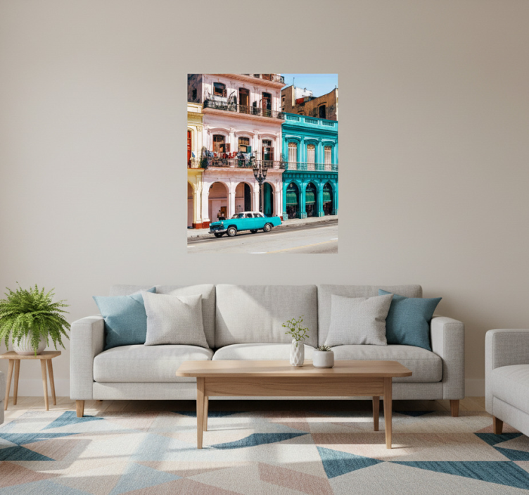 このリビングルーム ポスターは、さまざまな場所に簡単に配置できます。例えば、ソファの上やテレビの近くにかけることで、空間を一層引き立てます。ポスター リビングルーム 青とピンクの街と車のデザインは、どんなスタイルの部屋にもマッチします。