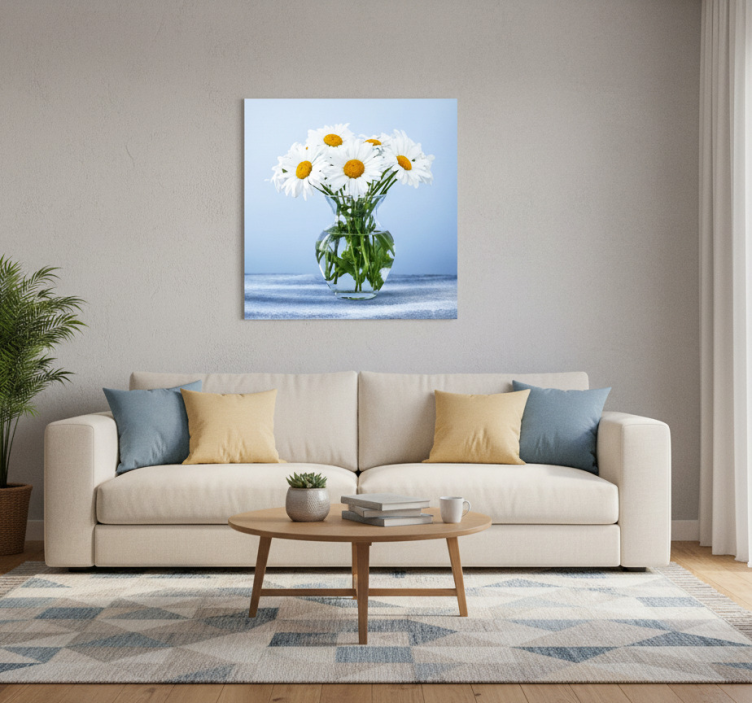 ポスター リビングルーム ガラスの鉢のデイジーの花