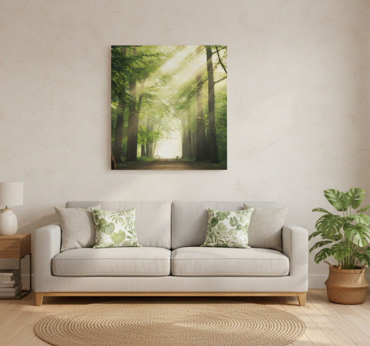 ポスター リビングルーム 太陽のある緑の森は、自然の美しさを感じさせる魅力的なデザインです。このポスターは、太陽の光が差し込む緑豊かな森を描いており、どんなリビングルームにも爽やかさと活気をもたらします。色彩豊かで鮮やかな印象を与えるこの作品は、心を和ませ、リラックスできる空間を演出します。180g/m2の紙厚と反射のない半マット仕上げにより、ポスターの色の鮮やかさが際立ち、見る人を惹きつけます。