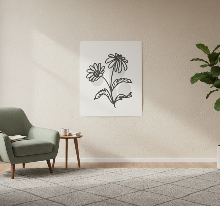 ポスター リビングルーム デイジーの花のラインアートデザイン
