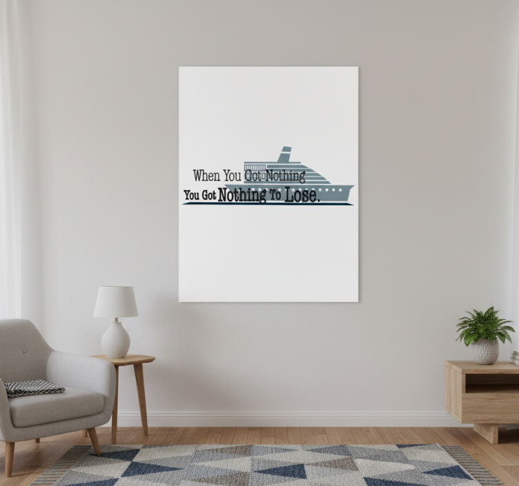 このアートワークは、スタイライズされたクルーズ船とインスピレーションを与える引用文を特徴としています。このフレーズは、自由と機会のマインドセットを強調し、少ないもので大きな展望が得られることを示唆しています。そのミニマリストデザインは現代的なタッチを提供し、さまざまなインテリアスペースに適しています。 ポスター リビングルーム タイタニック映画のモチベーショナル名言