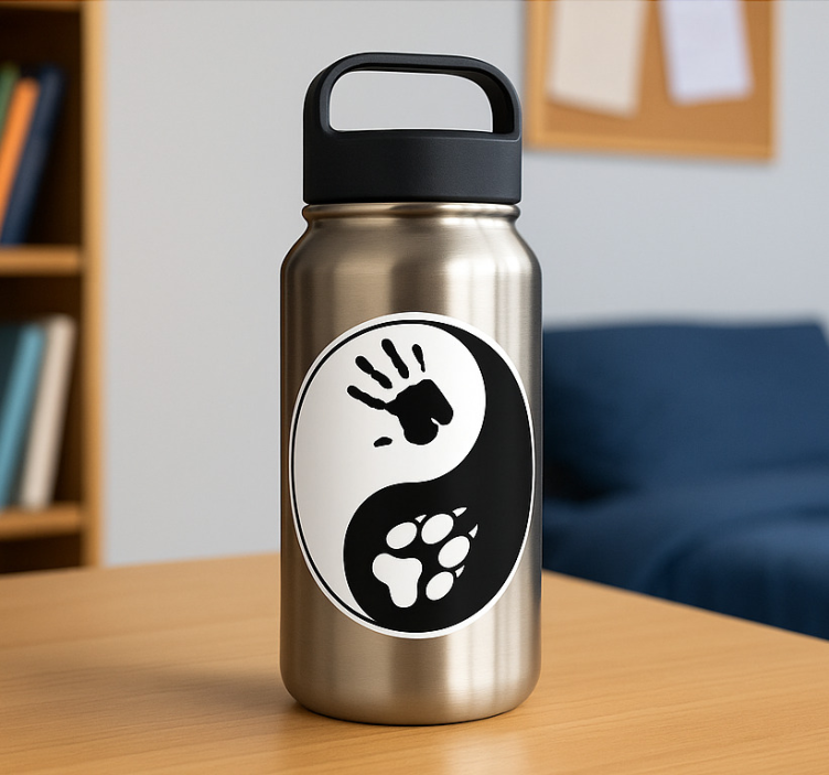 スリムでメタリックなコンテナには、人間の手形と動物の足跡を組み合わせた印象的な「yin-yang」デザインが施されています。これは自然と人間の調和を象徴し、すべての生き物の相互関係を強調しています。対照的なビジュアルが目を引く美しさを生み出し、自然愛好家や動物福祉の支持者に最適です。