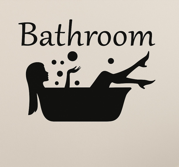 泡に囲まれたバスタブでくつろぐ人を描いた whimsical なデザイン。この空間を示すテキストが添えられ、バスルームの穏やかな雰囲気を高めています。この画像はセルフケアとリラクゼーションの本質を体現しており、入浴が静けさのひとときであることを思い出させてくれます。