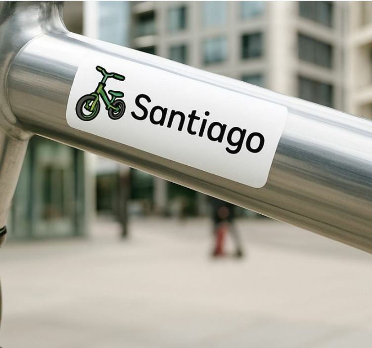 鮮やかなデザインには、遊び心あふれる自転車のイラストとともに、個人名が描かれています。幻想的なイメージと洗練されたクリーンな背景が組み合わさり、自転車の楽しさを強調しています。このデザインは、愛着のあるアイテムに個人的なタッチを加えるのに最適で、二輪での自由と冒険を象徴しています。