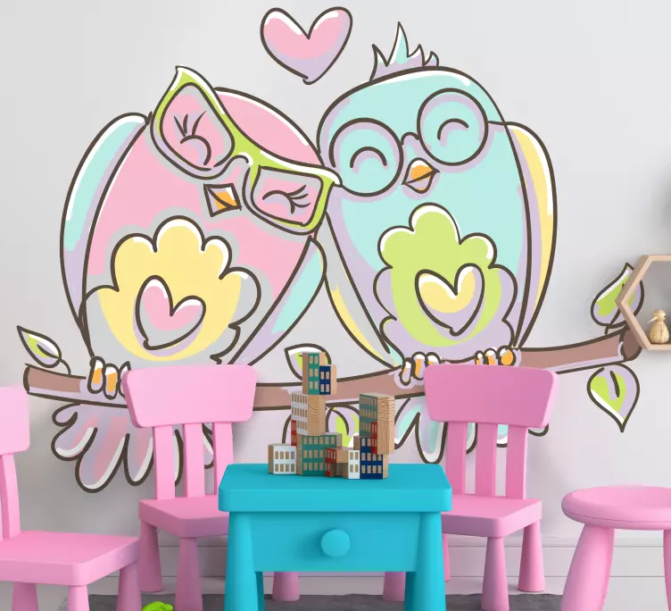動物 シール 可愛らしいラブバード愛らしいフクロウのカップルが描かれたこのデザインは、ピンクと青の色合いでハッピーな雰囲気を演出します。動物たちの幸せそうな姿が、見る人の心を温かくします。この動物 シール 可愛らしいラブバードは、あなたの空間に特別なアクセントを加えるアイテムです!