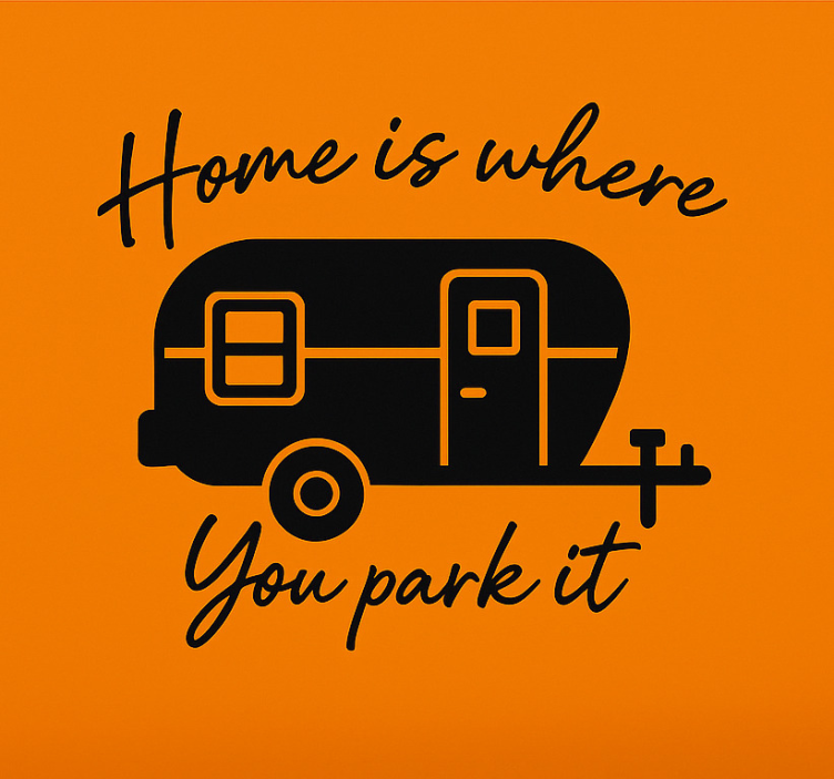旅のトレーラーの幻想的な描写と共に「Home is where You park it.」というフレーズがあります。この引用は、家は単なる場所ではなく、快適さと帰属感を見つける場所であるという感情を強調しており、旅行と探検の冒険心を反映しています。