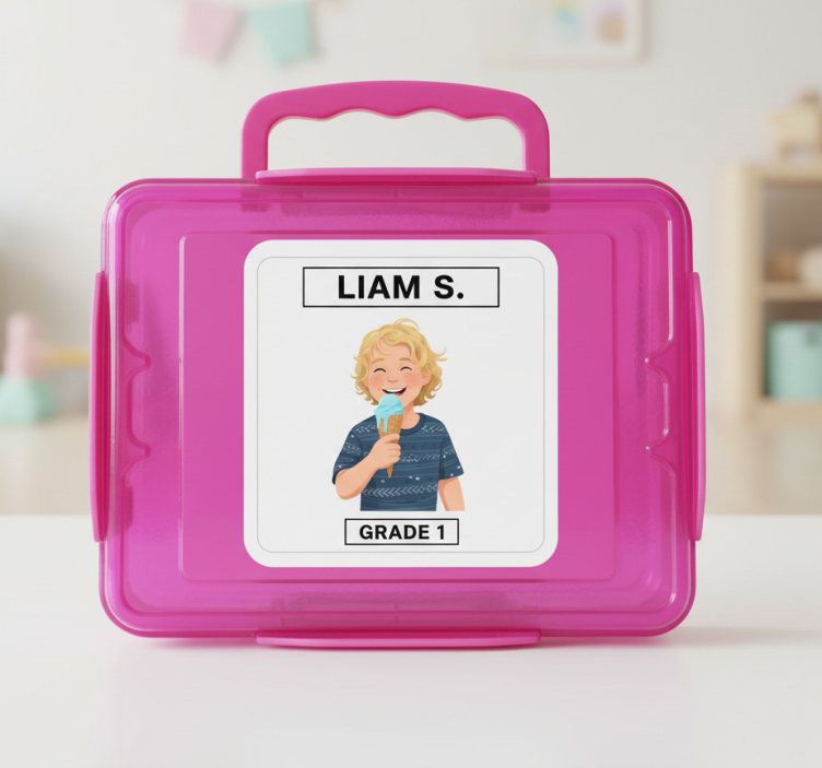 鮮やかな容器には、アイスクリームコーンを楽しむ陽気な子供が描かれています。遊び心満載のデザインは、子供たちの幸せな瞬間を捉えており、学校での使用にも最適です。このデザインは、子供時代の喜びと友達と特別な体験を共有する興奮を強調しています。