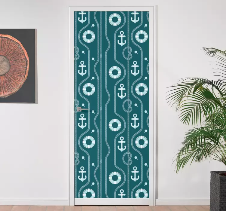 参考: A49488魅力的なアンカーパターンが特徴のこのデザインは、円形の要素を取り入れた海洋テーマを体現しています。複雑な形状は海の本質を呼び起こし、遊び心のある波と海事シンボルを組み合わせてスタイリッシュなインテリアのアクセントを加えています。