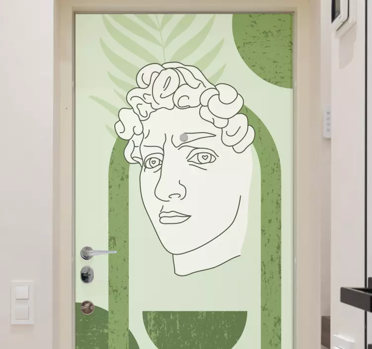 私たちの動物 シール 現代的な顔のアート作品は、ダビデ像のような彫刻的な美しさを持ち、ミニマリストなデザインが特徴です。ドアや壁に施すことで、現代的な空間を引き立てるこの作品は、線画の抽象的な形状と緑のトーンが絶妙に組み合わさっています。シンプルな中にも奥深さを感じさせるアートで、どんな場所にも調和します。