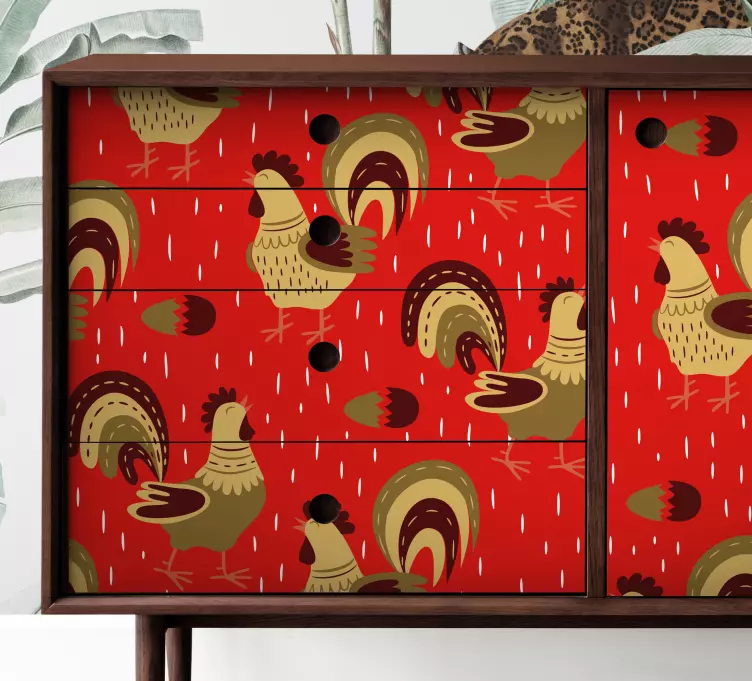 動物シール遊び心満載のニワトリ柄は、カラフルで楽しいデザインの製品です。この製品は、オンドリやオンドリの図が可愛らしいパターンを形成し、農場の雰囲気を醸し出しています。赤を基調とした色使いが目を引き、インテリアに遊び心をプラスします。動物好きな方には特におすすめのアイテムです!