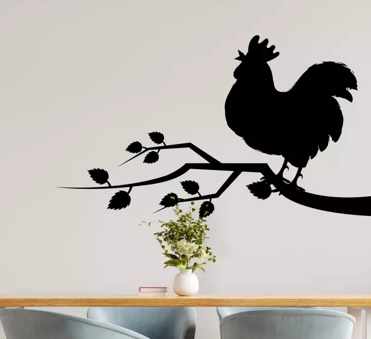 参考: A49034枝に止まる雄鶏の印象的なシルエットが、自然の要素と農生活を調和させています。葉で飾られた枝は有機的なタッチを加え、デザインの素朴な雰囲気を高め、どんな空間にも田舎の魅力をもたらすのに最適です。