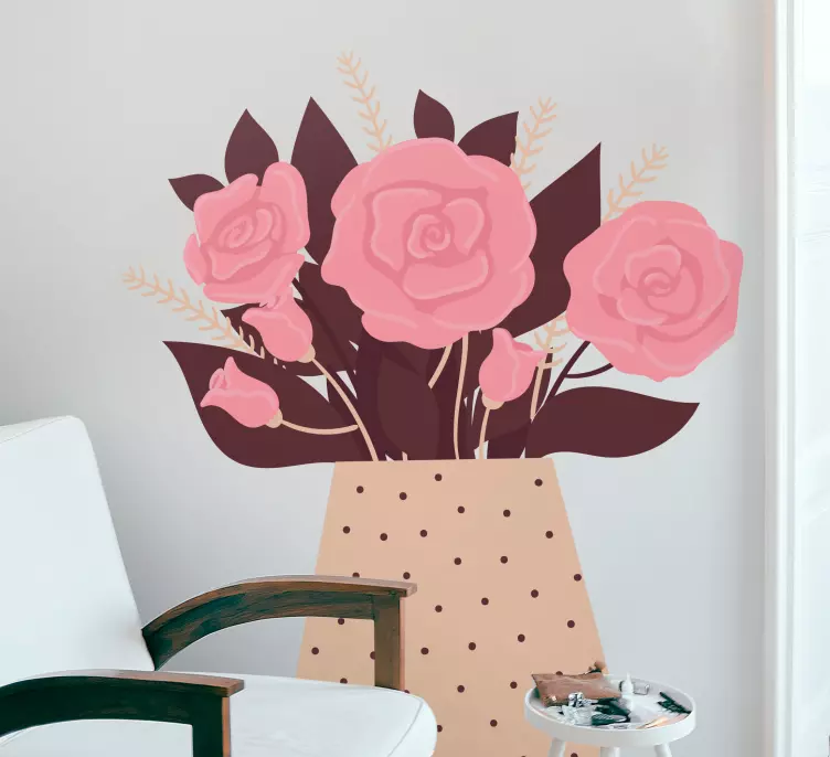参考: A48128ピンクのバラがドット模様の花瓶にアレンジされた美しい花のコ composition。 このデザインは、花の自然な美しさを称えながら、どんな空間にもエレガンスを加え、温かく迎え入れる雰囲気を作り出します。