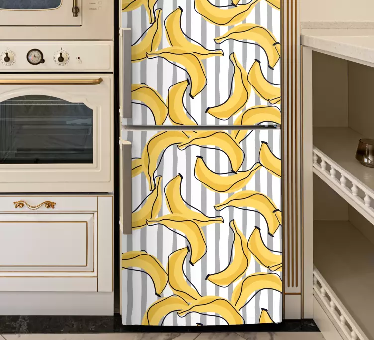 私たちの動物 シール バナナモチーフスタイルは、楽しいバナナのデザインが特徴のグラフィックで、冷蔵庫やキッチンを明るく彩ります。このシールは、いたずら書きのようなユニークなパターンがあり、黄色いフルーツの図が描かれており、遊び心満載のアイテムです。あなたのキッチンにぴったりの、楽しい雰囲気を演出します!