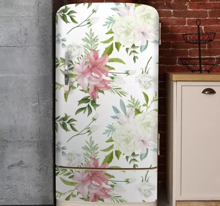 参考: A49541鮮やかな花柄が特徴のこのデザインは、キッチン家電の美しさを引き立てます。ピンクと白の花々と豊かな緑の組み合わせが、空間にさわやかな雰囲気をもたらし、どんなキッチン環境にも魅力と洗練を加えるのに最適です。