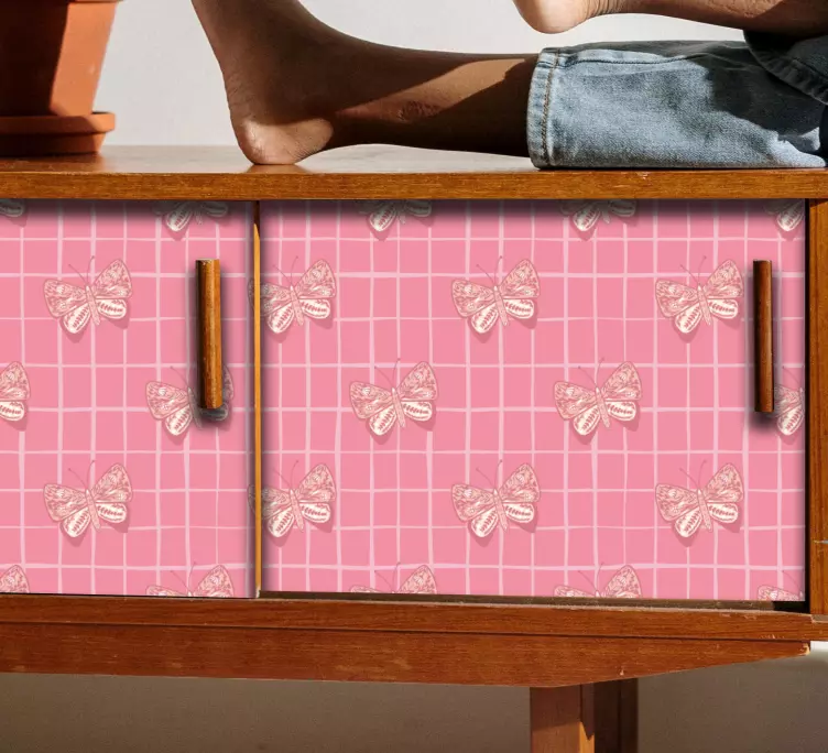 動物 シール ピンクの蝶のパターンこのユニークなデザインは、鮮やかなピンク色の蝶が市松模様で大胆に描かれたパターンで、どんな家具にも美しい装飾を添えます。蝶の優雅さと動物の魅力が融合したこの製品は、部屋に華やかさを加え、視覚的に楽しませてくれるでしょう。グリッド状に配置された蝶が、あなたのインテリアに遊び心を与え、洗練された雰囲気を演出します。