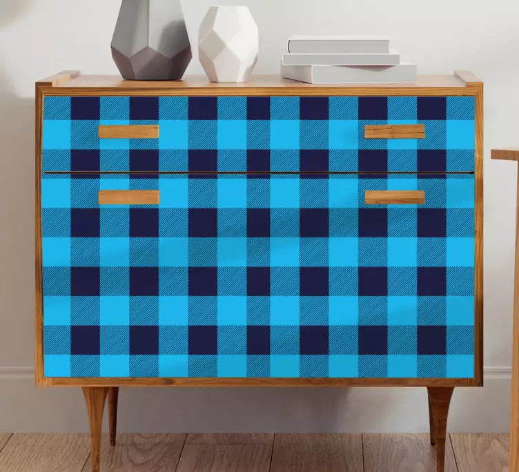参考: A49315デザインは大胆なチェックパターンが特徴で、青と濃紺の色合いを組み合わせています。この視覚的に印象的な要素は、家具にテクスチャーと深みを加え、美的魅力と現代的な洗練さを高めます。インテリアに新鮮で活気のあるタッチをもたらすのに最適です。