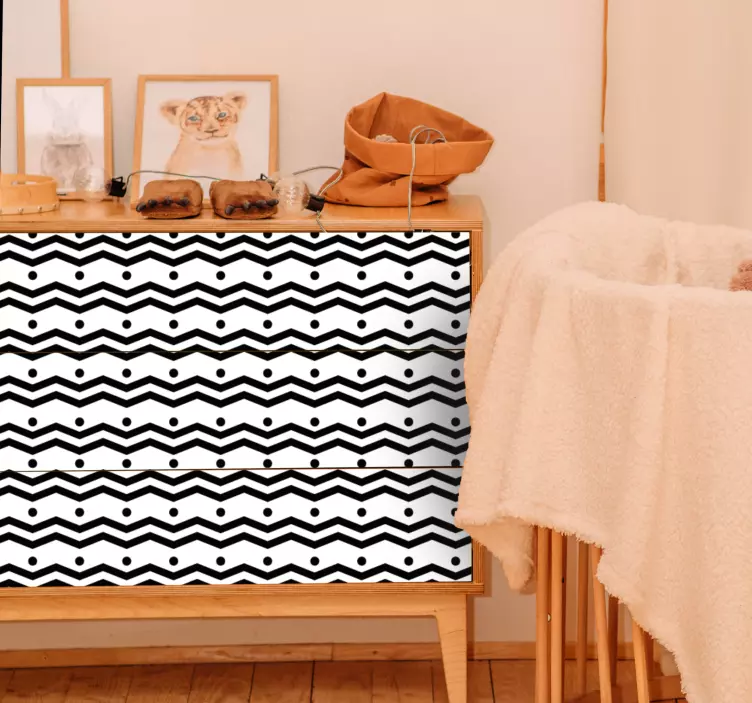 参考: A51668ジグザグのラインとドットが特徴のスタイリッシュなパターンで、家具の美観を高めるのに最適です。このデザインはモノクロの配色で現代的なタッチを加え、さまざまなインテリアに適しながら視覚的な興味と大胆な印象を生み出します。