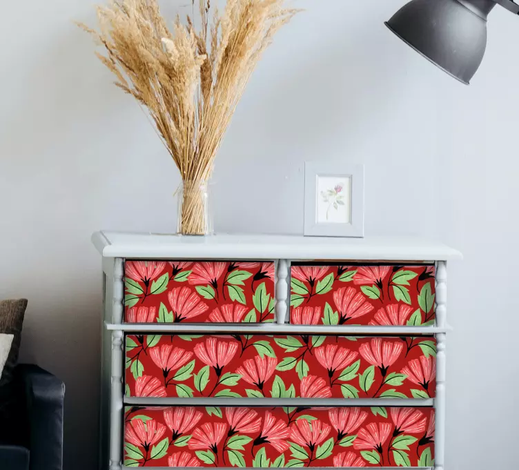 参考: A49126活気のある花柄が表面を飾り、大きな花びらと対照的な色の葉が特徴です。このデザインは家具の美的魅力を高め、自然の一部を室内に取り入れ、鮮やかで新鮮な雰囲気を反映します。