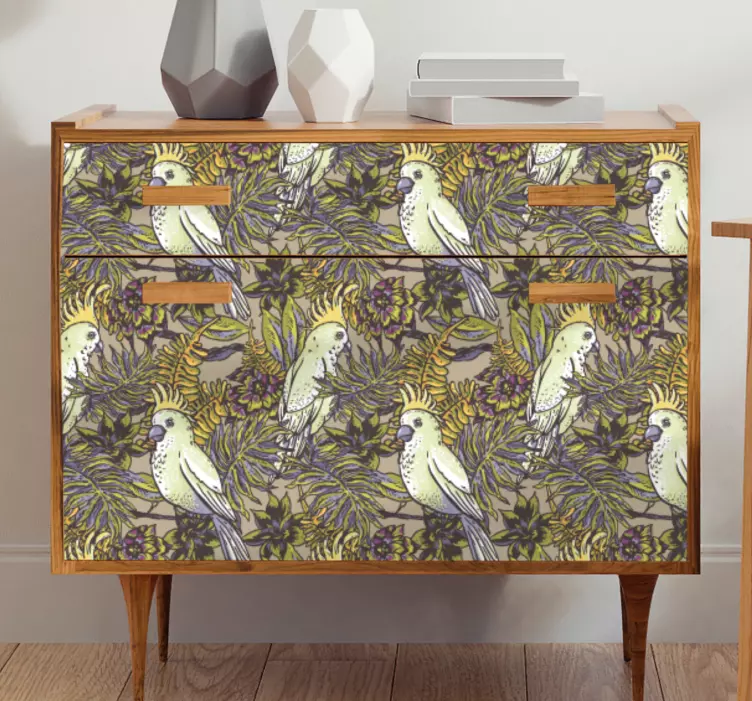 動物 シール 鳥をテーマにした活き活きとしたデザイン私たちの動物 シール 鳥をテーマにした活き活きとしたデザインは、オウムや葉、フラワーズ、家具、鳥、自然、フローラ、パターン、カラフルでトロピカルな要素が盛り込まれており、視覚的に魅力的な作品を提供します。この独特なデザインは、どんな空間にも生き生きとした雰囲気をもたらし、自然の美しさを感じさせることでしょう。