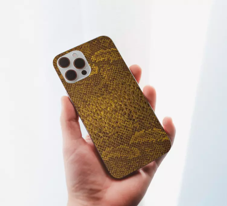 このデザインは目を引く蛇の皮のパターンを特徴としており、黄色と茶色の色合いで複雑な質感を表現しています。自然のモチーフは野生の感覚を呼び起こし、個人用アクセサリーとして魅力的な選択肢となっています。