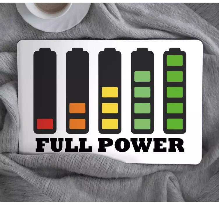 参考: A48325このデザインは、低から満充電までのエネルギーレベルを視覚的に表現する一連のバッテリーレベルインジケーターを特徴としています。「FULL POWER」という太字のタイポグラフィは、エネルギーと準備の強いメッセージを伝え、現代的なテクノロジーの美学を取り入れています。