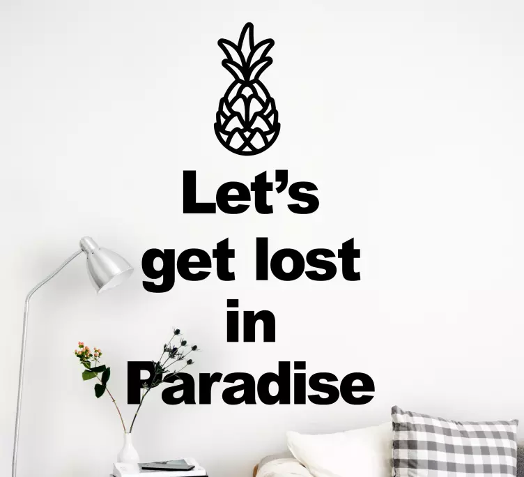 参考: A48933この作品は、太字のテキストステートメントとパイナップルのイラストを特徴としています。デザインは冒険とリラクゼーションの感覚を呼び起こし、視聴者に楽園への逃避のアイデアを受け入れるよう促します。トロピカルな雰囲気でどんなリビングスペースも引き立てるのにぴったりです。