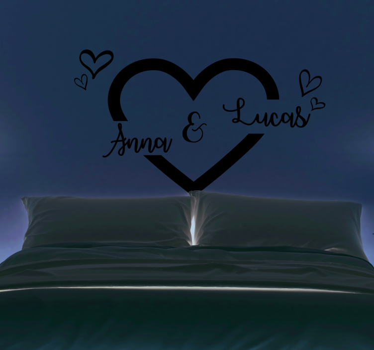 「Anna」と「Lucas」の名前が入った魅力的でカスタマイズ可能なハートデザインで、遊び心のあるハートが添えられています。あなたの生活空間に個人的なタッチを加えるのに最適で、このデザインはロマンチックな雰囲気にぴったりです。あなたのユニークなラブストーリーを反映するように調整できます。