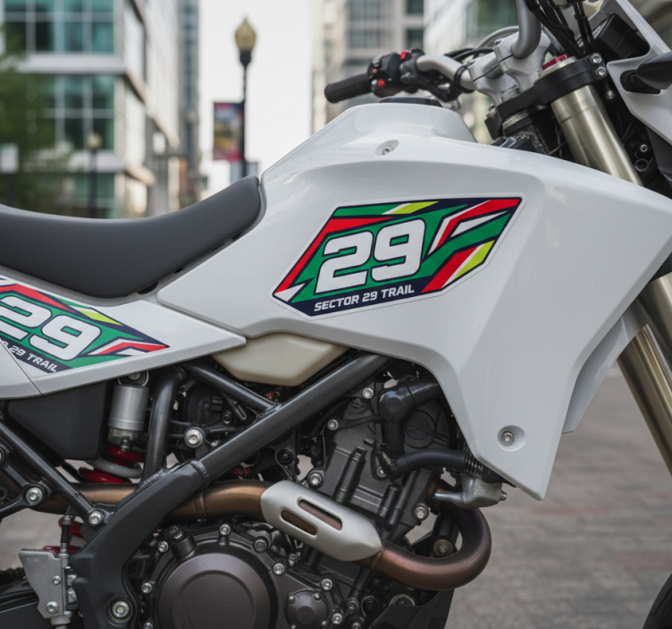 ダイナミックなデザインと大胆なグラフィックを特徴とするこの製品は、トレイルでの冒険に最適です。形と色の印象的な配置がスポーティな雰囲気を加え、ライドをパーソナライズしたい愛好者にぴったりです。そのメッセージは、探検の本質とこれからの旅のスリルを強調しています。