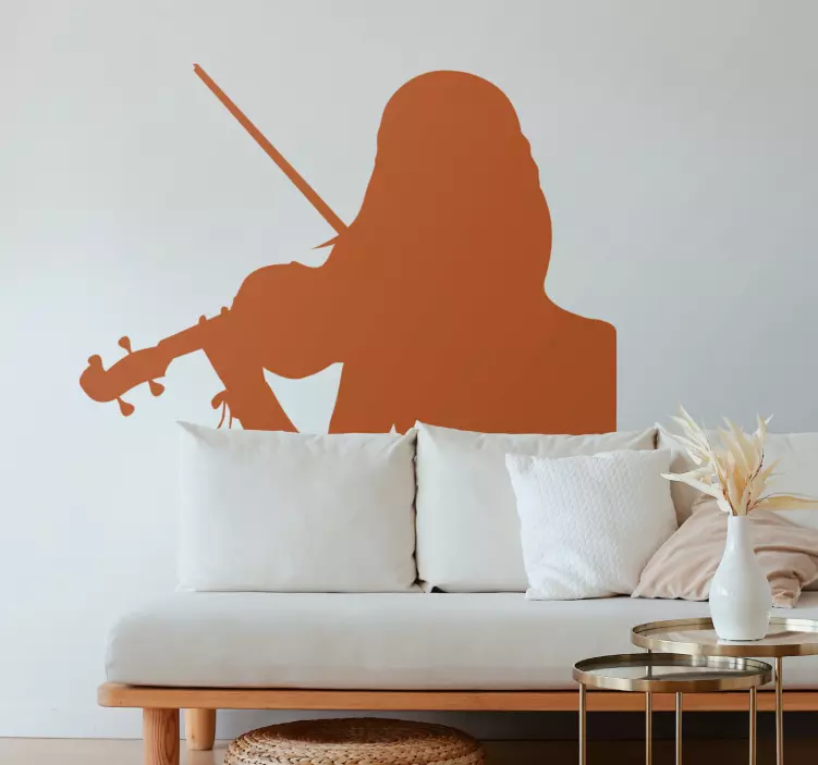 参考: A49476このシルエットは、巧みにバイオリンを演奏する音楽家を描いています。優雅な形は音楽と芸術的表現の本質を捉え、創造性と文化的な感謝を称える空間に魅力的な追加となります。