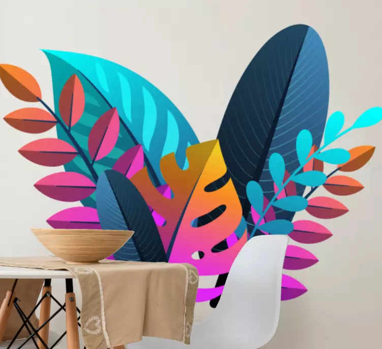 参考: A48051鮮やかな色合いの葉の美しいコレクションが、自然の本質を室内に引き込む目を引くビジュアルを作り出します。このデザインは、さまざまな形や色合いを特徴としており、どんな空間にも活気あるタッチを加え、新鮮なエネルギーを呼び起こします。